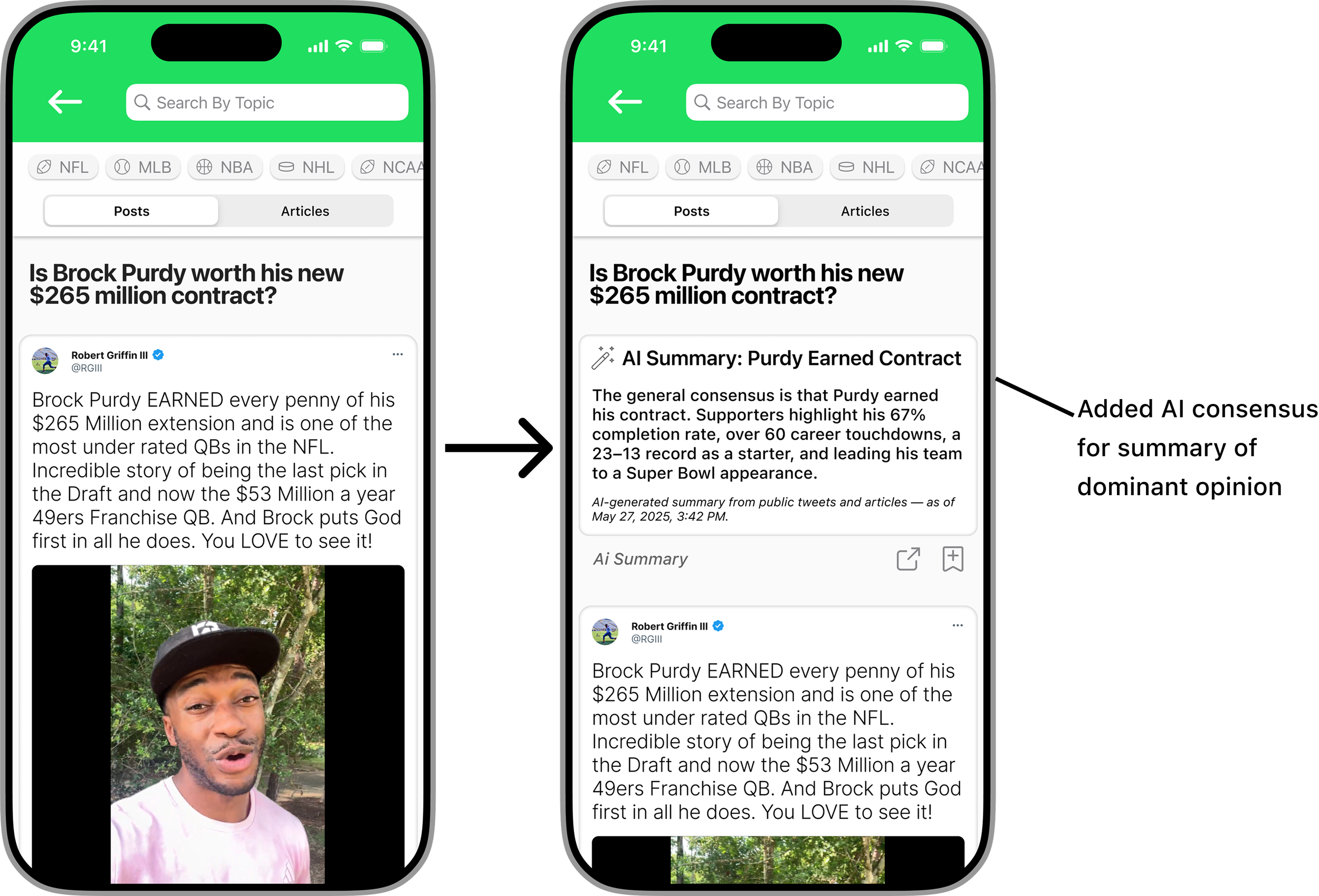 Many casual or non-sports fans feel excluded during conversations about specific sports topics because they lack quick and easy access to concise, relevant information. This often leaves them either admitting they’re out of the loop or staying silent. Although information is available online, it is typically overwhelming and time-consuming to navigate, making it difficult to quickly understand the prevailing opinions and key points needed to engage confidently in discussions.